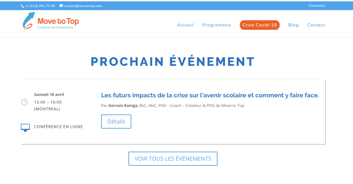 Samedi 22 janvier 2022 : 12-30 heure Montréal = 18h30 heure Paris