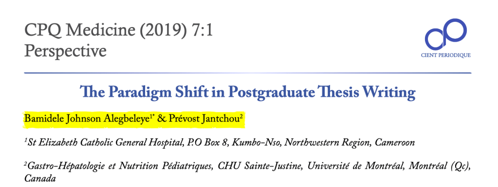 Globally, there is obviously a “Paradigm Shift” in thesis writing but several teachers, trainers, mentors, and academicians in scientific institutions are unaware of the new order of progress in postgraduate research writing. This article, therefore, is aimed at informing the readers about this paradigm shift.
