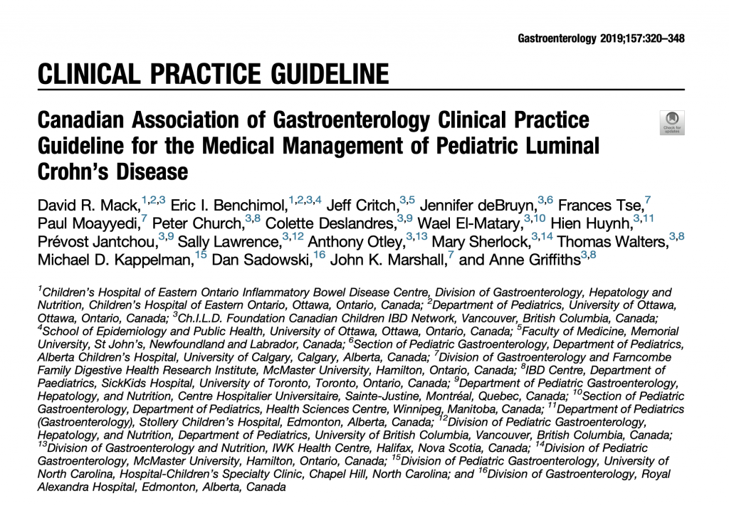 👉🏿Les lignes directrices concernant le traitement médical de la maladie de Crohn luminale chez l’enfant ont été publiées récemment dans la revue Gastroenterology et la revue Journal of the Canadian Association of Gastroenterology.